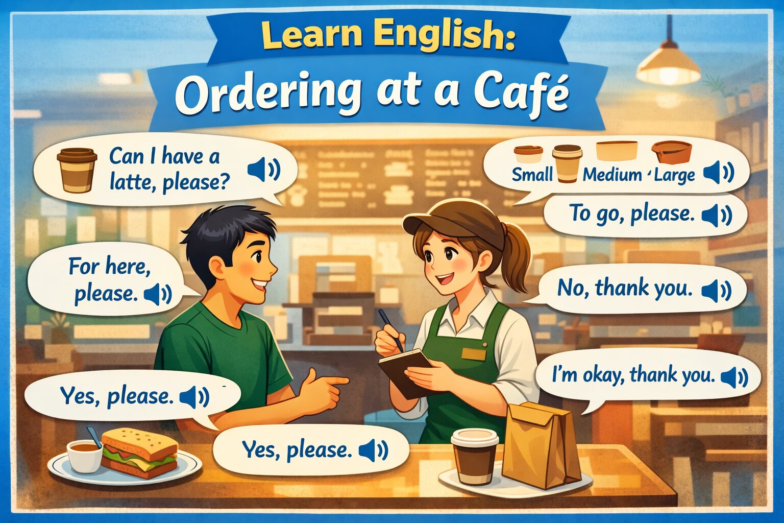 まずは 注文する・サイズを答える・持ち帰りか店内かを伝える ところから、ぜひ声に出して練習してみてください。
